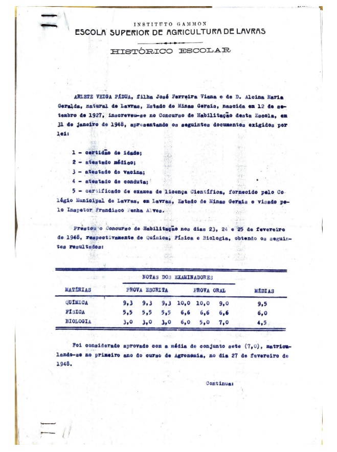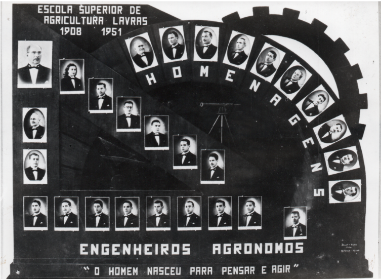 No alto de um quadro com 27 rostos masculinos, destaca-se o de Arlete Camargo Aranha, única mulher da turma de 1951 e primeira engenheira agrônoma a se formar em Minas Gerais. Ela figurou, ainda, entre as cinco pioneiras a receber essa titulação no Brasil. Sua graduação, iniciada em 1948, ocorreu na então Escola Superior de Agricultura de Lavras (ESAL), atual Universidade Federal de Lavras (UFLA), marco que definiu tanto sua trajetória quanto a história da instituição.